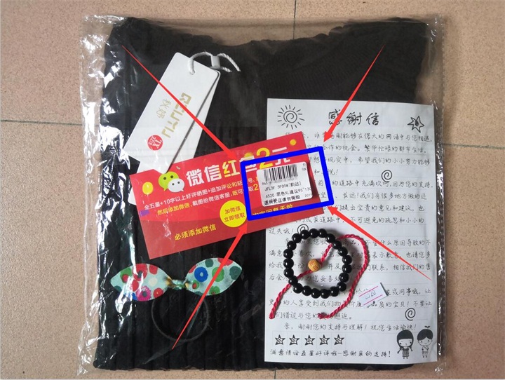 质检打包好的是下面的(小礼品、好评卡、包装盒等按照商家要求搭配),中间那个就是采购小标签,退货时尽量让客户原包装袋退回,尽量保证原包装(小标签)、原吊牌、不能影响二次销售、没有清洗过、没有香水味等特殊气味,拒收一切到付件!