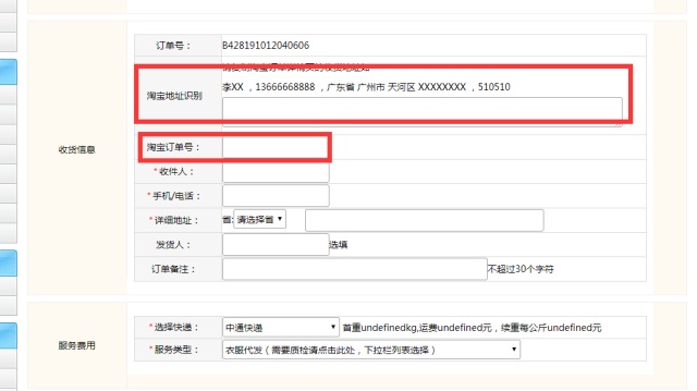 可以直接复制买家收货信息到第一个输入框内即可完成智能识别填写,如果是淘宝订单可以填写淘宝订单号,发货时可以使用一键同步淘宝发货功能