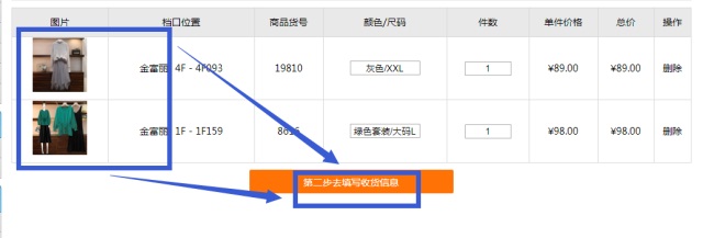 如果同1买家相同地址购买多件的,添加购物车之后先不要点击“第二步..”请继续添加商品,直到买家的多件商品全部加入到购物车后再点击“第二步去填写收货信息”