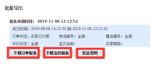 现在淘宝导出数据已加密需要点击发送密码 进行解密操作