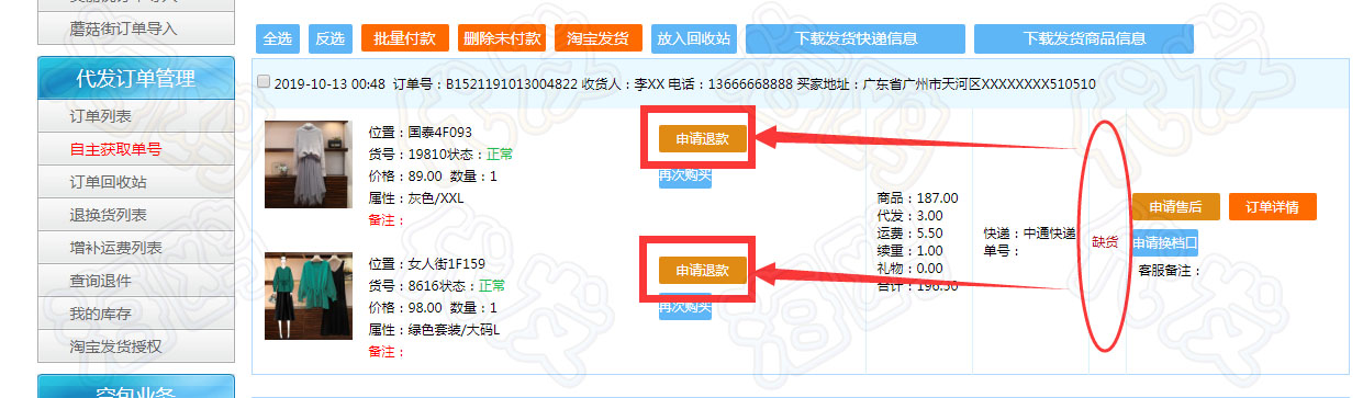 注意本站暂不支持换货,需要换货的订单请申请退货重新下单