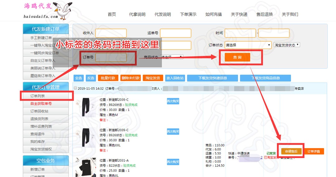 已发货订单的退货售后申请只有订单状态在“已发货”、“已成功”等状态才能有效提交退货信息!(可通过会员中心的订单列表,扫描采购标签的条码进行售后处理)