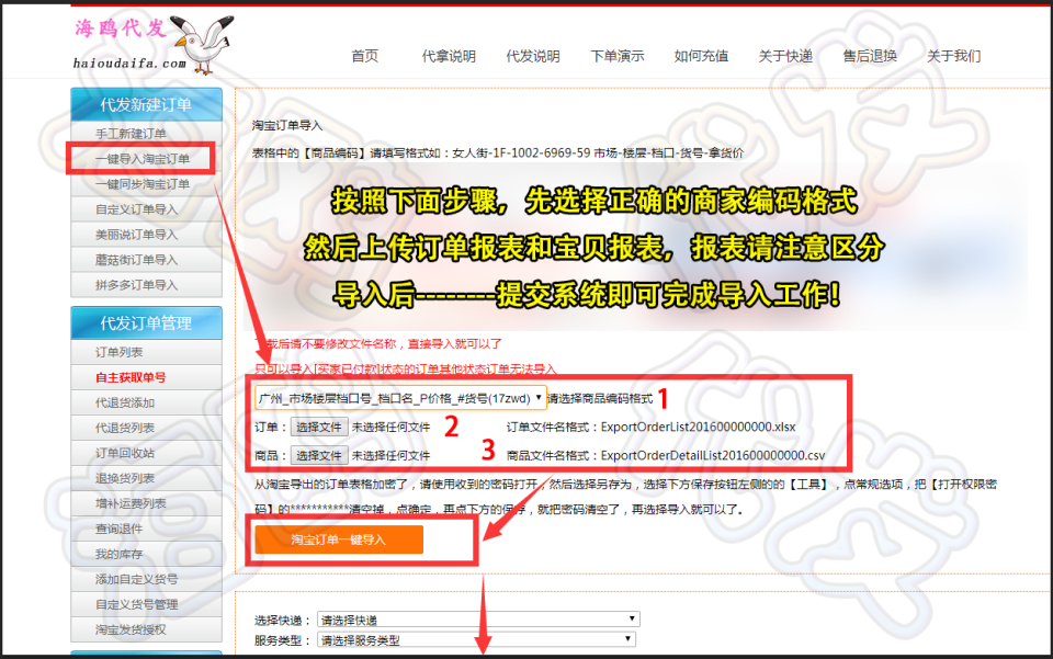 不知道什么原因淘宝发货这个页面每年都要出问题一两天,出现这种情况大家可以先用导入订单的方法下单,没用过的可以先看看下面的教程。