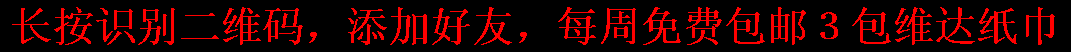 长按二维码微信识别添加好友,每周可免费领取3包维达纸巾